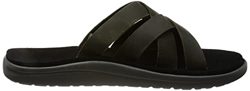 Teva Voya Slide Leather Sandal Mens, Infradito Uomo, Verde Oliva Scuro, 45.5 EU