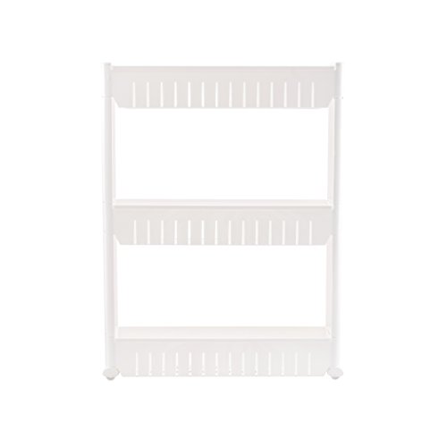Slide out bianco con 3 ripiani con ruote ideale per cucina, bagno, piccolo angolo e lo stoccaggio.