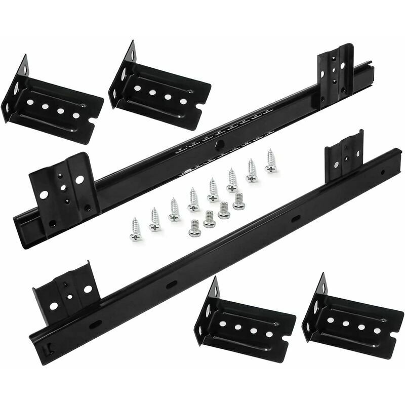 Materiale: binari in lamiera d'acciaio laminata a freddo con superficie zincata nera. Cuscinetto a sfere leggero e silenzioso. Molto pratico: le guide possono essere montate a diverse altezze, in modo da poter utilizzare tastiere e mouse piatti come tastiere da gioco "più spesse" - Installazione molto semplice - Avvitare una tavola di legno nel la staffa di guida (viti incluse). L'uscita della sfera si arresta e si blocca automaticamente su entrambe le estremità (estesa e inserita). Le guide telescopiche sono ugualmente adatte per cassetti per tastiera, ripiani e scrivanie, scrivanie, ecc. Fornitura: 1 coppia di guide telescopiche (destra/sinistra), 4 staffe.