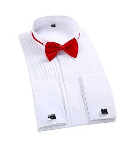 Sliktaa Camicia Elegante da Uomo Camicia da Smoking Smoking da Cerimonia Nuziale Camicia da Collo Pieghettata Pieghettata