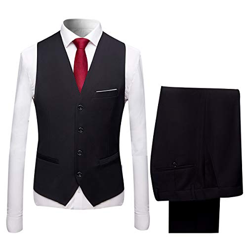 Sliktaa Completo da uomo 3 pezzi slim fit matrimonio formale cena abito nero un bottone con risvolto dentellato smoking giacca pantaloni e gilet, Nero, XXXL