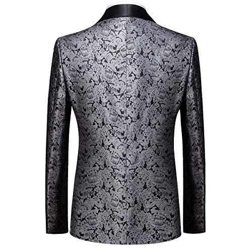 Sliktaa Uomo Costume 3 Pezzi Formale Jacquard Classico Scialle Risvolto Matrimonio Business con Un Pulsante Smokings Casual Giacca & Gilet & Pantaloni, argento, S