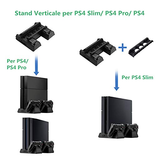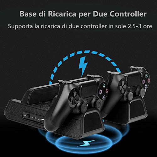 [ Base di Ricarica Veloce per i PS4 Controller ] Il support ha due slot, può caricare 2 controller contemporaneamente in 2-3 ore, o 1 solo controller in 1.5-2 ore. Attenzione: Il caricabatterie smette di funzionare se la console viene spenta