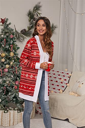 SLIMBELLE Cardigan Donna Cardigan Lungo per Donna Blazer con Apertura Frontale a Maniche Lunghe (Rosso M)