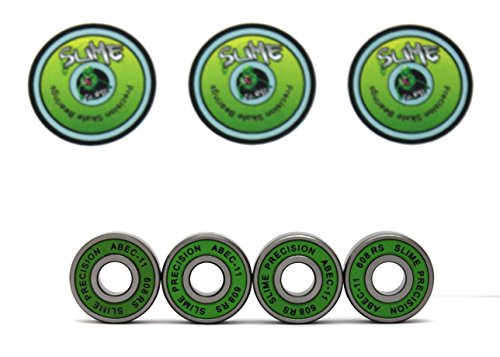 Slime ABEC-11 608 RS Cuscinetti in gomma, impermeabili, per skateboard, monopattino e pattini in linea, colore verde, confezione da 4