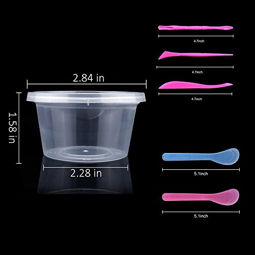 SWZY Slime Containers, 50PCS 4OZ Leakproof Clear Plastic Big Storage Containers with Lids, 2PCS Mixing Spoon, 3PCS Slime Tools