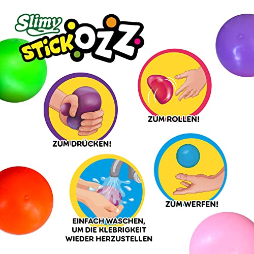 4 palline adesive Slimy StickOzz da schiacciare, schiacciare e gettare ovunque. Il divertimento per grandi e piccini. Singolarmente o insieme, gli adesivi Slimy StickOzz aderiscono a tutte le superfici senza lasciare residui. Che si tratti di pareti, porte o soffitti, i Slimy StickOzz rotolano e si illuminano al buio!