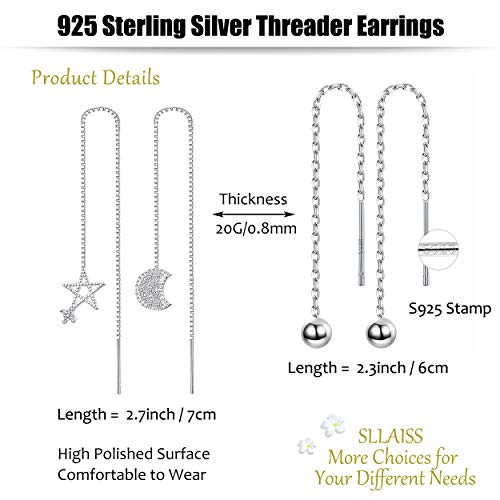 Dimensioni: lunghezza degli orecchini infila stella lunare = 7 cm. Lunghezza degli orecchini infila perline in argento = 6 cm. Spessore della catena = 20 G/0,8 mm. Superficie lucida, leggera e comoda da indossare. Troverai gli orecchini che si abbinano alla maggior parte dei vestiti come abiti casual, vestiti da allenamento, camicie, abiti, pantaloni e così via.