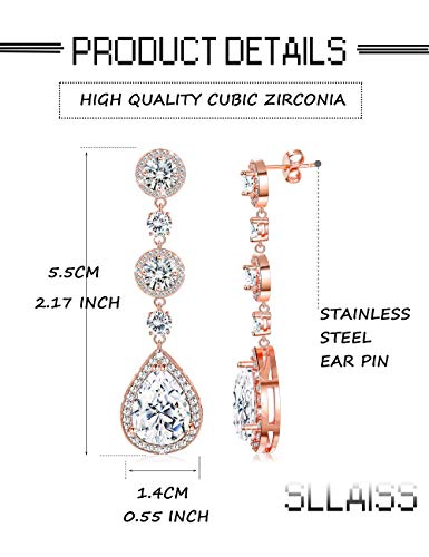 Sllaiss Orecchini Pendenti a Goccia per le Donne Orecchini a Forma di Zircone con Fermaglio per le Ragazze Regalo in Oro Rosa Placcato