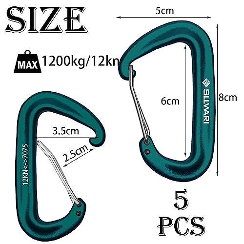 Sllwari Moschettone, 5Pezzi Moschettoni Arrampicata 7075 Alluminio Ultralight 12KN (1200 KG),D Forma, per Alpinismo, Amaca, Campeggio, Backpacking, Escursionismo(Scelta di 5 Colori) (Verde)