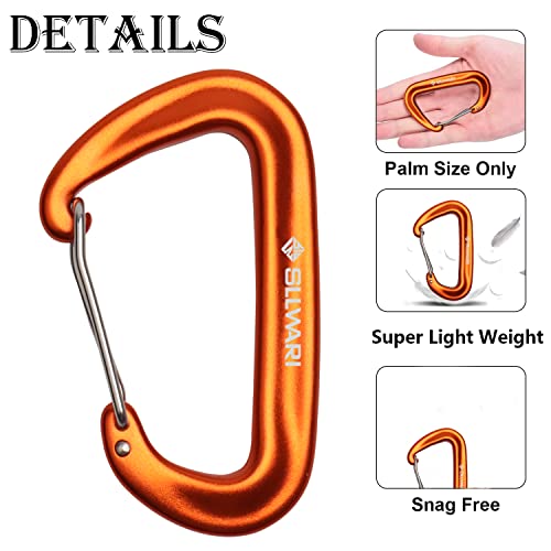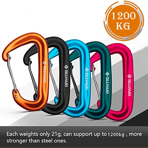 Sllwari Moschettone, 5Pezzi Moschettoni Arrampicata 7075 Alluminio Ultralight 12KN (1200 KG),D Forma, per Alpinismo, Amaca, Campeggio, Backpacking, Escursionismo(Scelta di 5 Colori) (Arancione)