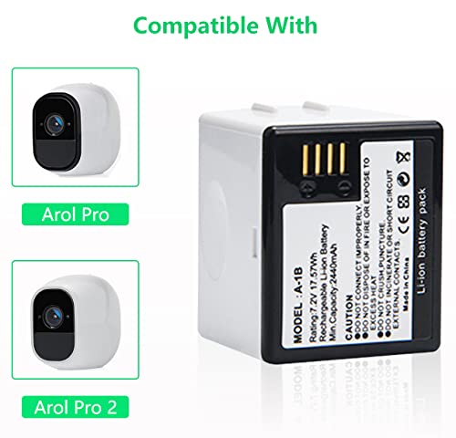 SLODA Camera Batteria 2-Pack Sostituzione per Arlo Pro/Pro2 VMA4400 A-1B,Doppio LCD Adattatore Caricabatterie per Arlo Pro, Pro2 Sicurezza Batteria Ricaricabile