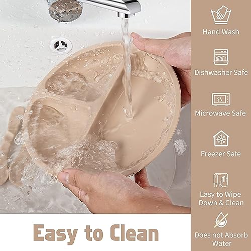 SLOSH Piatto Silicone per Bambini con Ventosa senza BPA Piatti Pappa Svezzamento Antiscivolo per Bambini Adatto alla Tavoli e Seggioloni Lavastoviglie con Cucchiai e Forchette