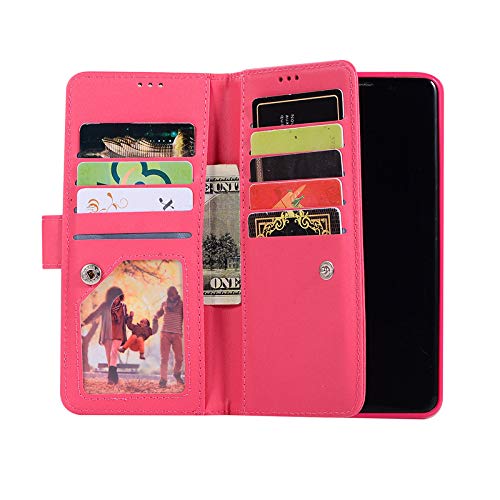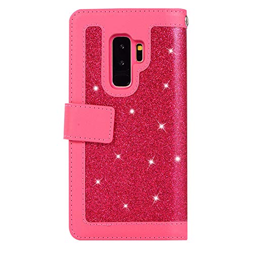 9 Slots per schede Portafoglio in Pelle Custodia Compatibile con Samsung Galaxy S9 Plus Cover Brillantini Bling Glitters Cerniera Flip Wallet PU Chiusura Magnetica Zipper Case Rosso