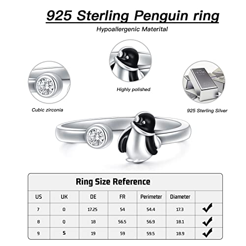Materiale: l'anello a forma di pinguino da donna è realizzato in puro argento Sterling, anallergico, anti-ossidazione, senza nichel, cadmio, senza piombo, adatto per un uso a lungo termine.