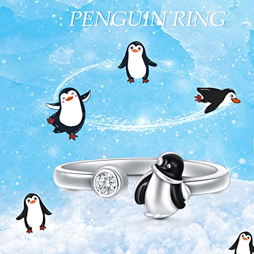SlowSloth Anello a forma di pinguino in argento Sterling 925, con simpatici pinguini, regolabile, anello aperto, idea regalo per donne e ragazze amanti dei pinguini, cristallo