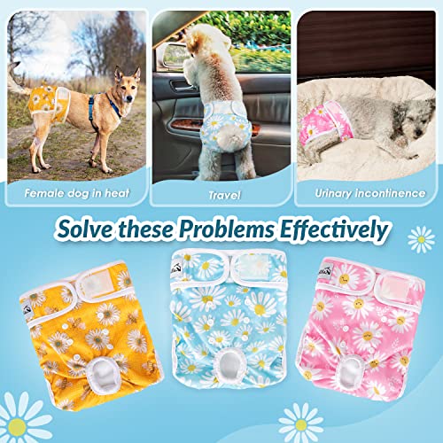 SlowTon Pannolini Riutilizzabili Del Cane Femmina, 3 Pack No Leak Lavabili Dog Period Pantaloni Super assorbenti Pantaloni di Calore Del Cane Comodi Pannolini Sanitari Del Cane con Pulsanti Regolabili