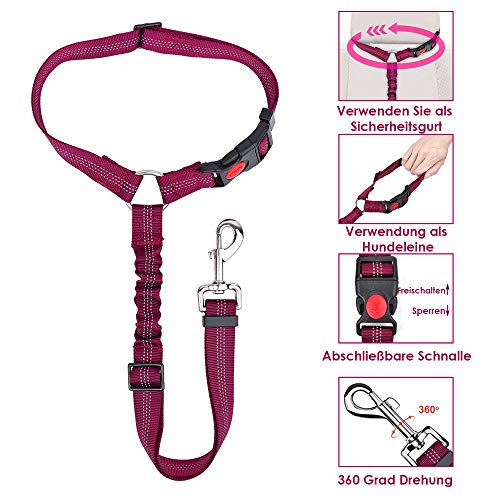 Facile da usare e multifunzione: gli accessori da viaggio per animali domestici possono essere facilmente appesi al poggiatesta e la fibbia in metallo girevole collega l'imbracatura o il collare del cane. Può essere utilizzato anche con il coprisedile per animali domestici. Non è solo una cintura di sicurezza per animali domestici, ma anche un guinzaglio generico.