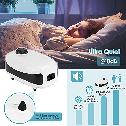 SlowTon Pompa Ad Aria per Acquario con Doppia Uscita, Pompa di Ossigeno Silenziosa Regolabile per Acquario, Aeratore con 2 Valvole di Ritegno/Pietre/Tubi, Ideale per Acquari