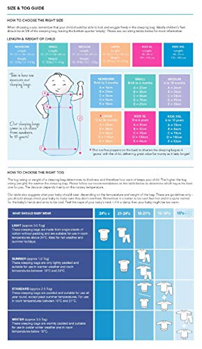 Il sacco nanna Slumbersac è disponibile in 5 taglie dalla nascita fino ai 10 anni