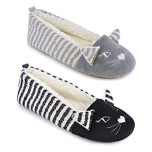 SlumberzzZ - Pantofole da donna foderate in peluche, con suola antiscivolo in tessuto