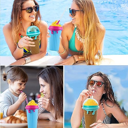 Slushy Maker Cup in Silicone,Slushy Maker Cup con 2 in 1 Straw e Spoon,Fai da te fatto in casa Slushie Maker Cup,Bicchiere Frozen Magic,Frozen Magic Squeeze Cup,Riutilizzabile Slushy Cup