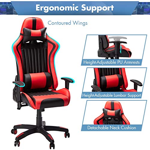 Supporto Ergonomico: offre la pausa comoda, sonnecchiare e dormire per la grande e imbottita seduta di 52 cm, lo schienale di 72 cm, il cuscino amovibile per collo e il cuscino regolabile per lombare dopo il gioco, l'incontro o lavoro da lungo tempo.