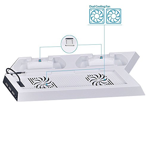 SmaAcc Ventola di raffreddamento con doppio stazione di ricarica per i controller PS4 / DualShock 4 Controller - bianco (Non compatibile con PS4 Slim/Pro)