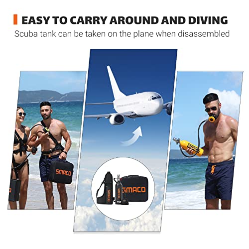 ✅【Tempo di immersione più lungo】La bombola di immersione S400 può essere utilizzata continuamente per 15-20 minuti quando è piena d'aria (il tempo di immersione è correlato alla frequenza respiratoria personale). Il serbatoio pesa solo 5,64 libbre. Le bombole SMACO non sono adatte solo per la pratica subacquea dei principianti (non più di 10 m), ma anche come fonte di gas di riserva per i subacquei professionisti (non più di 30 m).