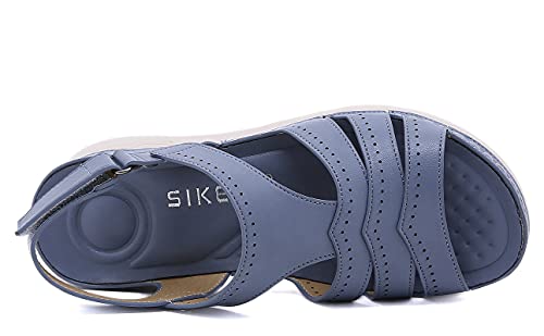 SMajong Sandali con Zeppa Donna Estivi Comode Cuoio Open Toe Platform Sandalo con Velcro Sandali Scarpe da Spiaggia