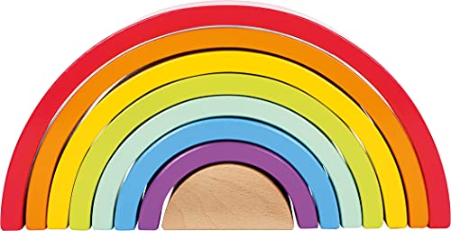 Small foot company Elementi da Costruzione in Legno Arcobaleno Grande, in Legno, Gioco ad Incastro per la motricità, dai 12 Mesi