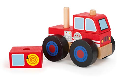 Small Foot Costruzione dei Vigili del Fuoco in Legno Certificato FSC 100%, Veicolo dei Pompieri da assemblare Giocattoli, Multicolore, 11071