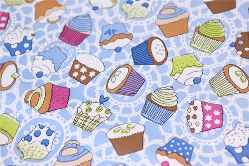SMALL BLUE CUPCAKES CUP CAKE PVC OILCLOTH VINYL FABRIC KITCHEN CAFE BAR TABLE WIPECLEAN PICTURE TABLECLOTH PER METRE 100CM X 135 CM BRAND NEW CUT TO ORDER by QUICKFABRICS