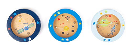 Small Foot-11447 Espositore Mini-Labirinto Space, in Legno, 12 Pezzi, Gioco di abilità per i più Piccoli Giocattoli, Multicolore, 11447