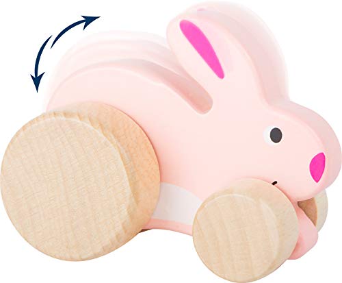 Small Foot- Lepre da Spingere per Bambini, in Legno Certificato al 100% FSC, stimola la Fantasia e la creatività, da 12 Mesi Giocattoli, Colore Rosa, 11047