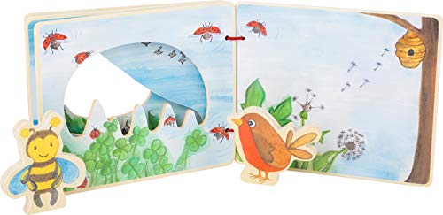 Small Foot Illustrato Mondo interattivo in Volo in Legno Certificato FSC 100%, Le Pagine del Libro presentano Forma Giocattoli, Multicolore, 11217