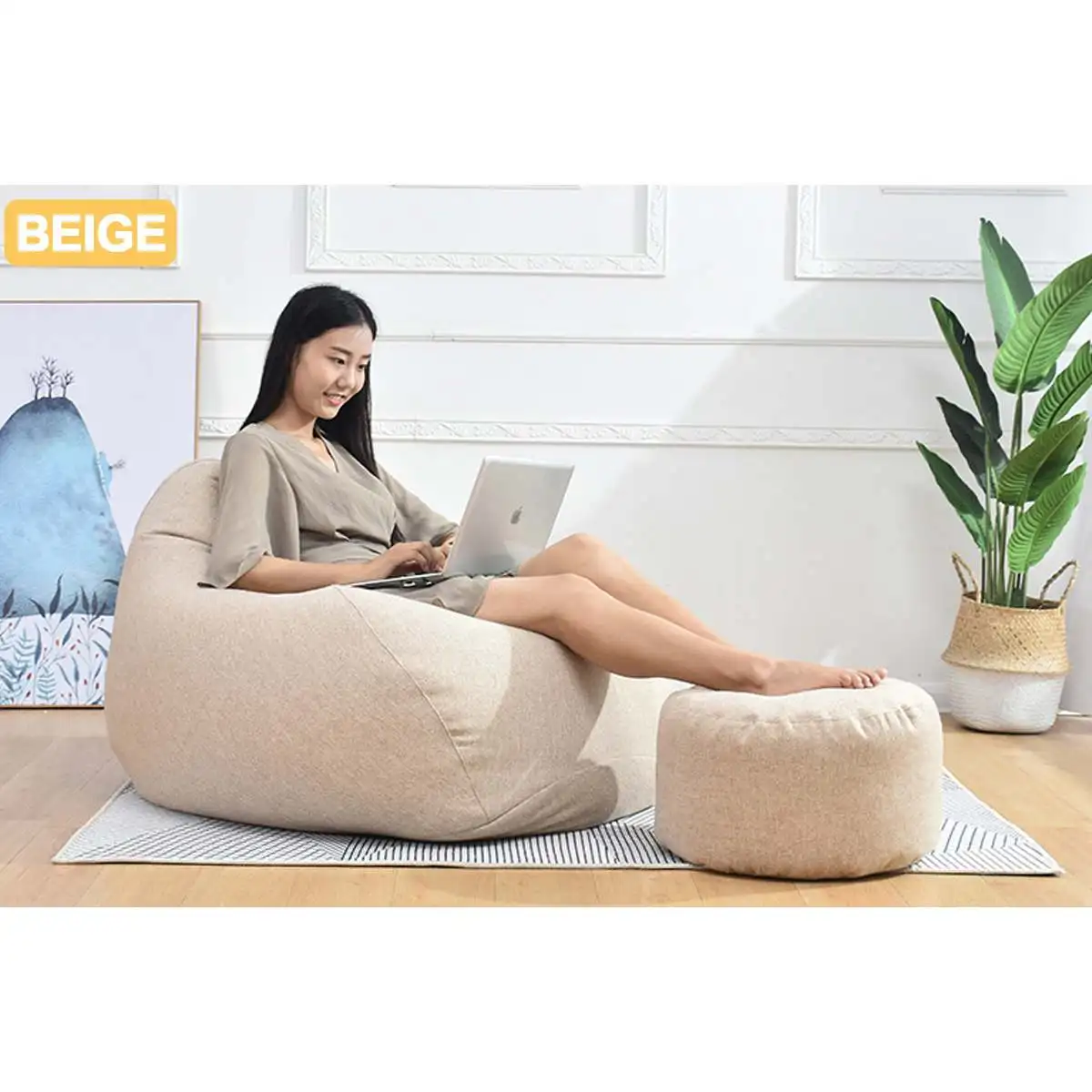 Small Round Beanbag Sofas Cover Waterproof Gaming Bed Chair Seat Bean Bag Solid Color Lounger Chair Sofa Cotton Linen Chair Cove