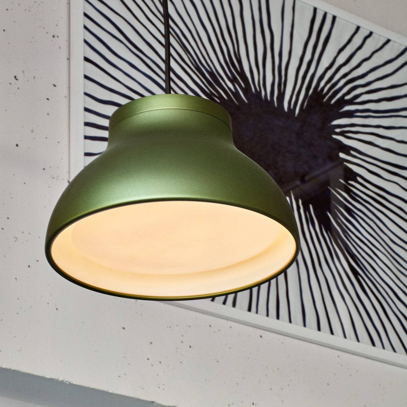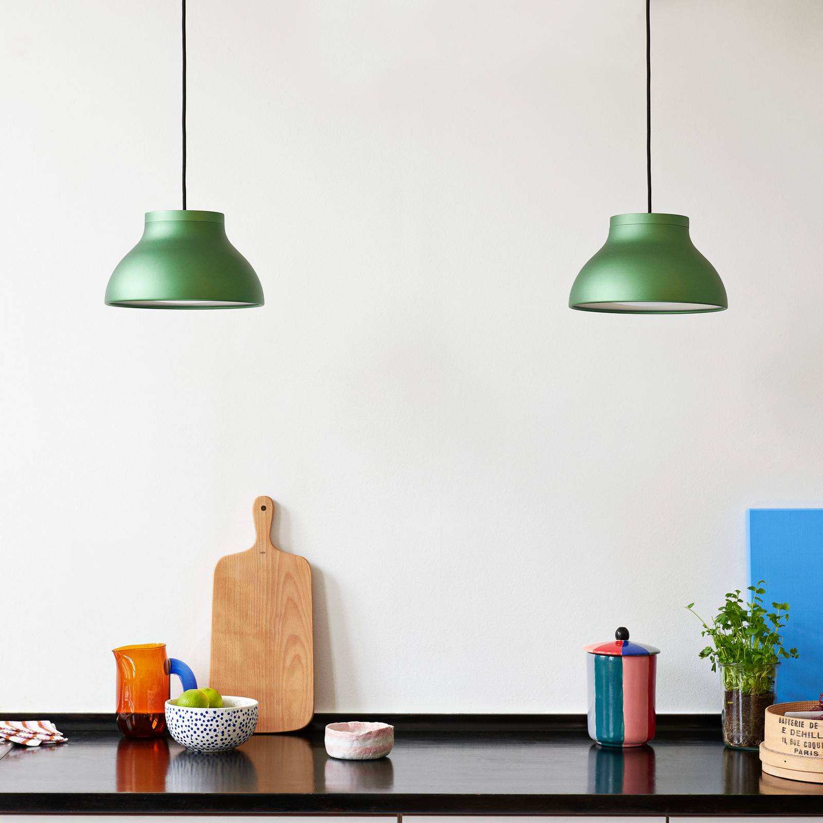 PC Small lampada a sospensione in alluminio anodizzato con diffusore La lampada a sospensione PC Small è realizzata con un paralume in alluminio anodizzato dalla bella forma, chiuso nella parte inferiore da un diffusore sagomato e rimovibile in policarbonato. Utilizzato singolarmente o in gruppo, in fila per illuminare un bancone o un tavolo lungo, o montato in un gruppo, l'apparecchio a sospensione illumina un'ampia varietà di aree, con il diffusore nel paralume che assicura una luce diffusa e non abbagliante. L'apparecchio è dotato di un cavo tessile nero intrecciato. La serie di lampade PC è stata progettata dal designer francese Pierre Charpin per il produttore danese HAY. Come tutte le lampade della serie, la lampada a sospensione è caratterizzata da una forma semplice in combinazione con un design colorato. Caratteristica dei disegni di Pierre Charpin è il gioco di forme e colori. Le forme geometriche di base in combinazione con il colore sono un aspetto costante del suo lavoro