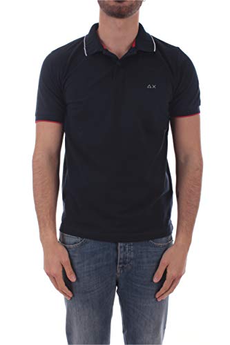 SUN 68 Polo Small Stripe ON Collar da Uomo Navy Blue, A30106