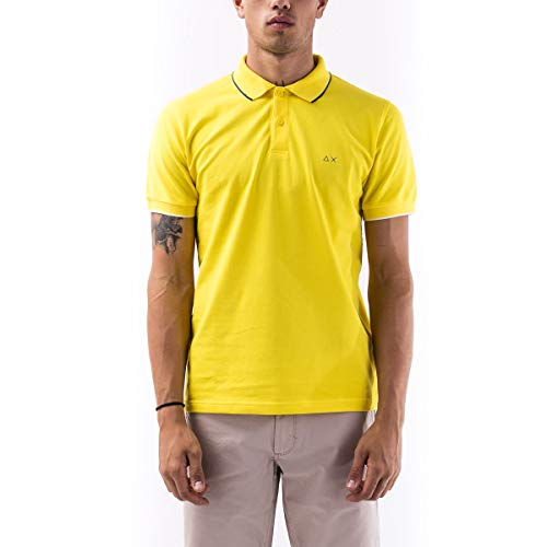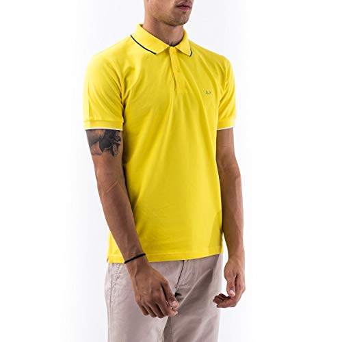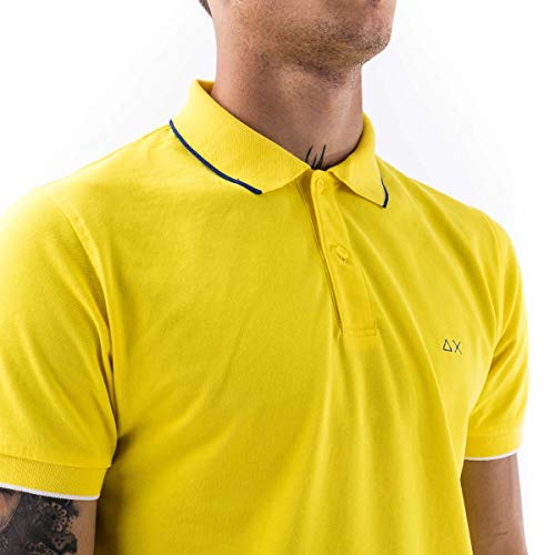 SUN 68 Polo Small Stripe ON Collar da Uomo Giallo, A30106