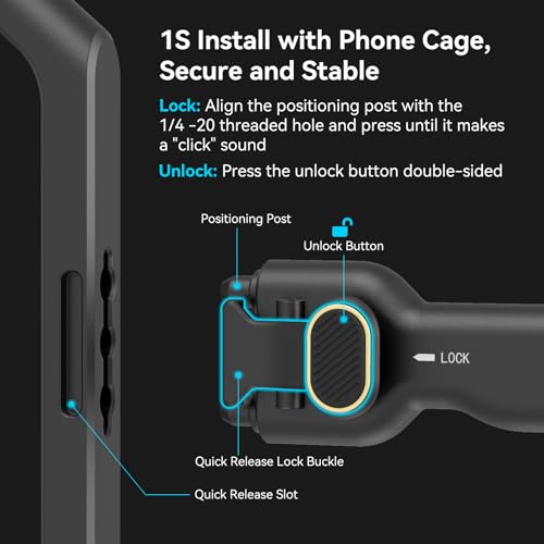 Compatibilità con la Gabbia del Telefono: L'adattatore a sgancio rapido con maniglia laterale è progettato per la gabbia per telefono universale a sgancio rapido SMALLRIG 4299 e la gabbia per telefono speciale SMALLRIG per iPhone serie 15. Se utilizzato con la nuova serie di gabbie a sgancio rapido di SMALLRIG, l'adattatore fornisce una soluzione efficiente per le riprese professionali con il telefono cellulare.
