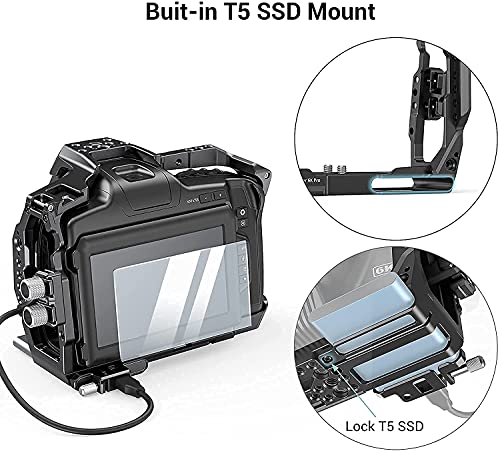 Gabbia multifunzionale: il kit di accessori SmallRig 3298 offre una robusta gabbia completa e può essere smontato in mezza gabbia. Il supporto SSD integrato sul fondo per Samsung T5 SSD occupa pochissimo spazio e migliora la compattezza e fissa il morsetto del cavo SSD e USB-C per garantire stabilità.