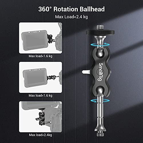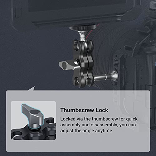 MAGIC ARM A DOPPIA TESTA A SFERA: SMALLRIG Magic Arm 3238 è composto da due teste a sfera con viti da 1/4'' e un morsetto a testa sferica. Potrebbe funzionare con altri accessori per diverse configurazioni di montaggio.