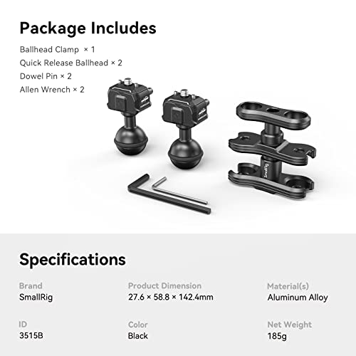 SMALLRIG Braccio Magico HawkLock Drop-in con Doppia Testa a Sfera a Sgancio Rapido (Vite 1/4"-20) Supporto Monitor per Monitor da Campo, Luci, Registratori Audio - 3515B