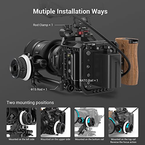 【Per il Controllo Della Messa a Fuoco】SMALLRIG mini Follow Focus 3010B è progettato per un controllo della messa a fuoco facile e veloce nelle riprese video. È fissato sul lato sinistro dell'obiettivo tramite asta e morsetto per asta da Φ15 mm (con guida NATO).