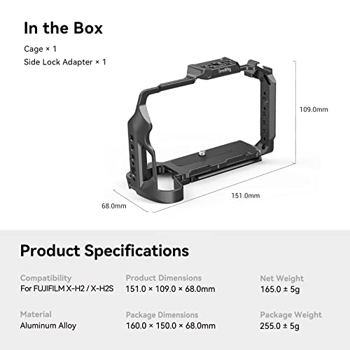 [Per FUJIFILM X-H2 / X-H2S] La gabbia completa all-in-one è stata progettata per FUJIFILM X-H2 / X-H2S per proteggere la fotocamera e fornire diversi punti di fissaggio. La confezione include una gabbia X-H2S, un adattatore di blocco laterale e un cacciavite a taglio magnetico per un facile montaggio e smontaggio.