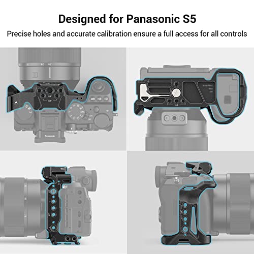 Kit Gabbia Ottimizzato per Panasonic S5: Il kit gabbia è appositamente progettato per Panasonic LUMIX S5. Con linee del corpo pulite, il suo design aerodinamico offre una presa comoda e non blocca i pulsanti e la porta della batteria della fotocamera.