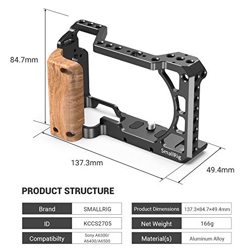 SMALLRIG Cage Gabbia Kit con Wooden Handle per Sony A6100 / A6300 / A6400-2705B