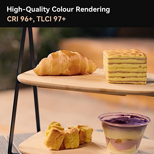 [2700K-6500K Dimmerabile]: SMALLRIG 450B COB Video Light viene fornito con una scala di temperatura del colore da 2700K (caldo) a 6500K (freddo), il controllo della luce intelligente supporta 9 effetti di luce e la regolazione della temperatura del colore. Altissima resa cromatica TLCI 97+, CRI 96+, ripristina veramente il colore degli oggetti.