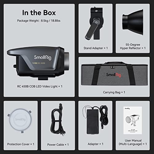 SMALLRIG RC 450B Lampada Video COB Bicolore, 2700K-6500K 121000Lux @1m, Illuminazione da Studio Professionale Leggera con Sistema di Supporto di Smorzamento Non-Stop e Borsa per Il Trasporto - 3976